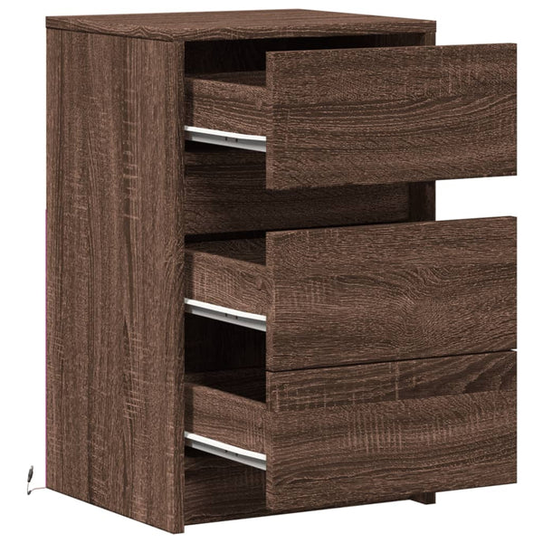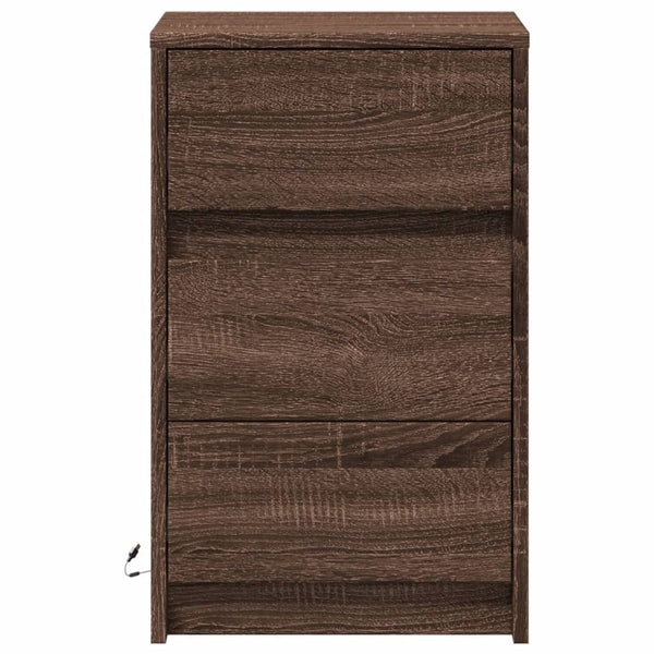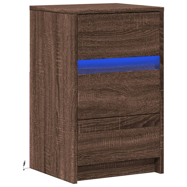 Ruskea yöpöytä led-valoilla, tammi puinen