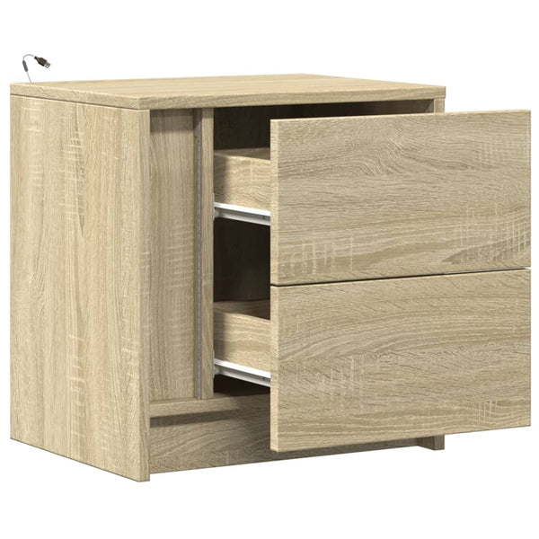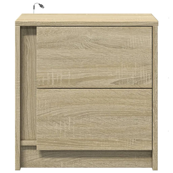 Yöpöytä led-valoilla sonoma-tammi puinen
