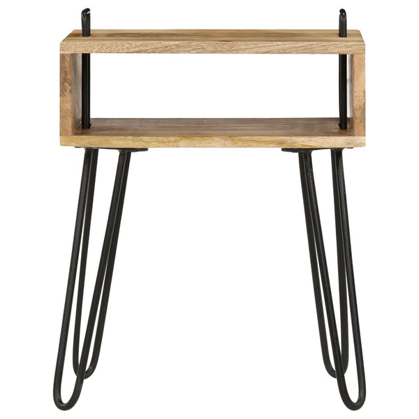 Kiinteästä mangopuusta ja vakaasta teräsrungosta valmistettu yöpöytä on erittäin vakaa ja kestävä. Pöytälevy ja hylly tarjoavat säilytystilaa kaikenlaisten pienien esineiden pitämiseksi järjestyksessä. Teräsrunko lisää pöydän tukevuutta ja antaa sille teollista tyyliä. Jokainen työvaihe hiomisesta kiillotuksesta lakkaukseen on tehty erittäin huolellisesti. Tämä tuote on helppo koota.