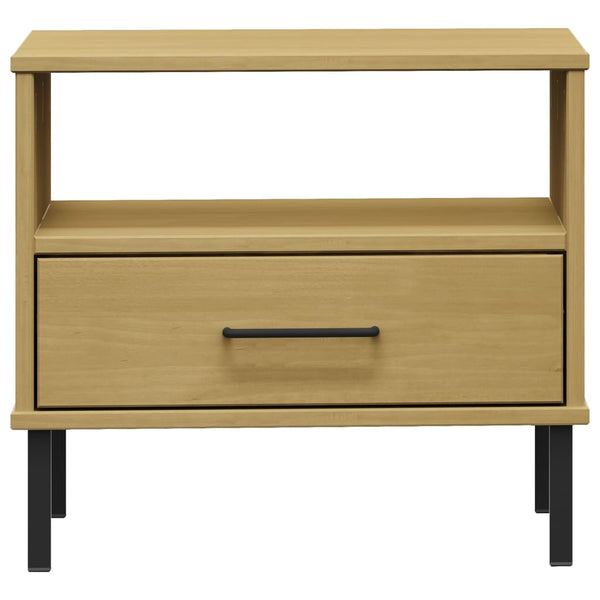 Ruskea yöpöytä metallijaloilla, mänty, oslo
