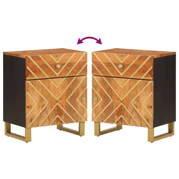 Ruskea ja musta yöpöytä 50x33x60cm mangopuu