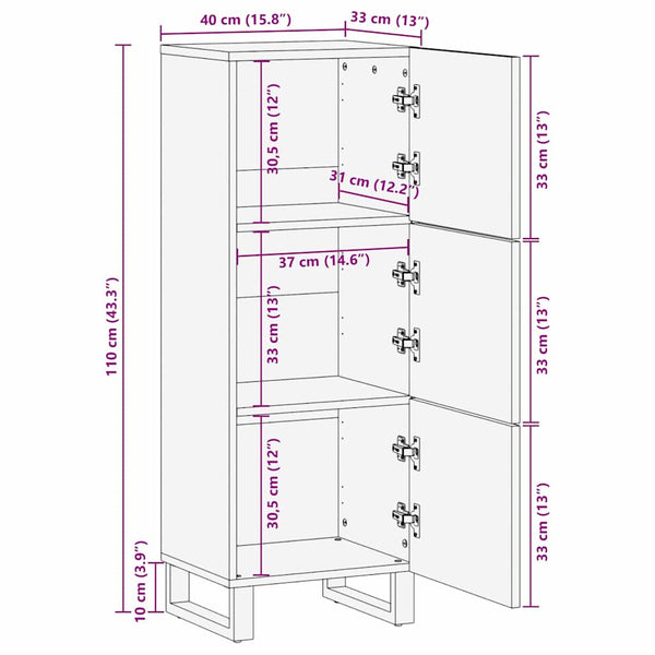 - Materiaalit: Highboard on tehty kestävästä mangopuusta, joka on tunnettu kestävyydestään ja kauneudestaan. Kiinteä puu tarkoittaa, että se on tukeva ja kestävä, joten se näyttää hyvältä pitkään.