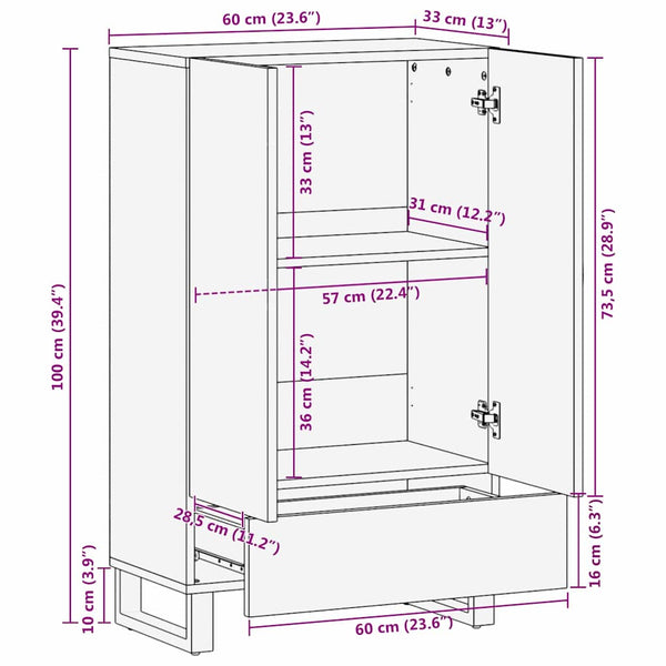 - Huippuluokan materiaalit: Valmistettu kestävästä mangopuusta ja teknisestä puusta, tää sivupöytä on tehty kestäväksi ja näyttää elegantilta. Se tuo hienostuneisuutta mihin tahansa huoneeseen ajankanssa. Näiden materiaalien yhdistelmä tarkoittaa, että se on paitsi käytännöllinen myös taidetta, joka sopii erilaisten sisustustyylien kanssa.