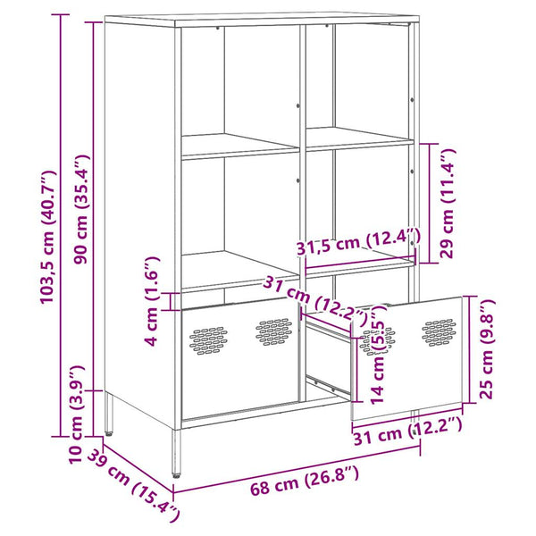 Sinapinkeltainen highboard 68x39x103,5cm teräs