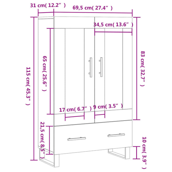 - Kokonaismitat: 69,5 x 31 x 115 cm (L x S x K)