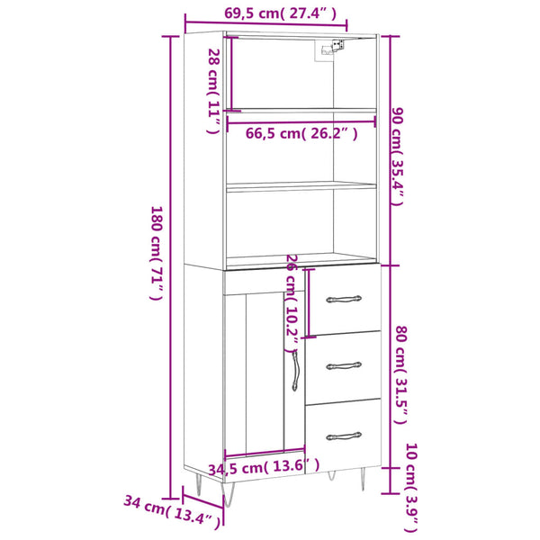 - Mitat: 69,5 x 34 x 180 cm (L x S x K)