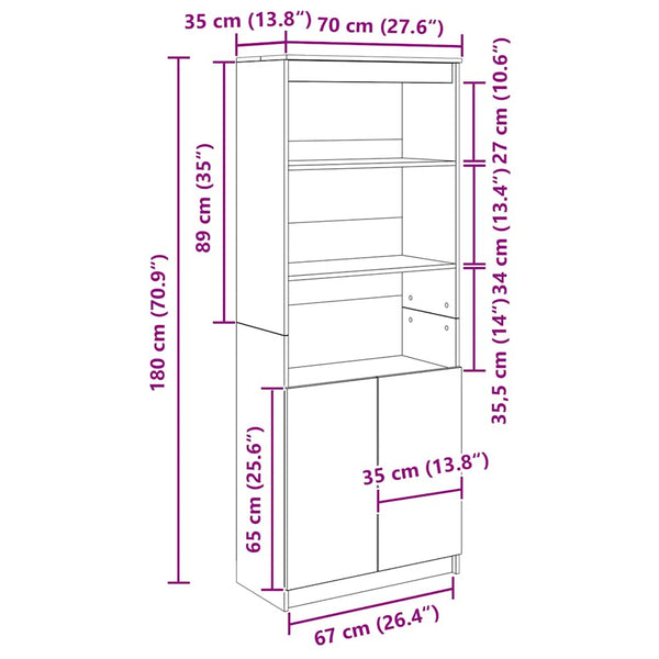 - Kokonaismitat: 70 x 35 x 180 cm (L x S x K)