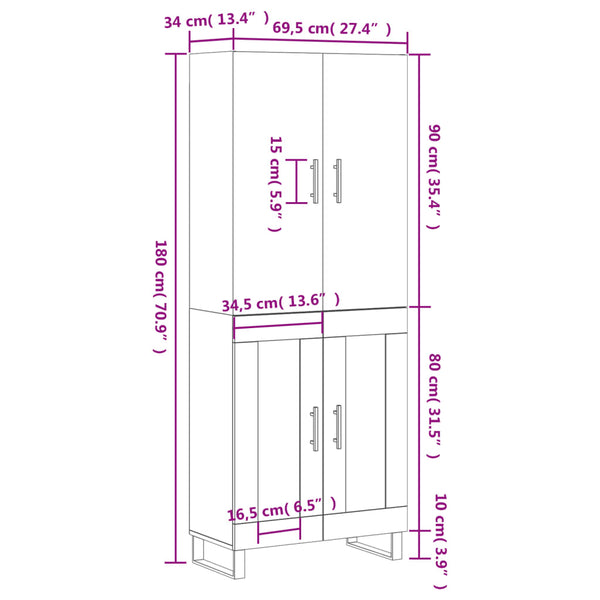 • Mitat: 69,5 x 34 x 180 cm (L x S x K)