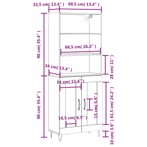 - Kaapin yläosan mitat: 69,5 x 32,5 x 90 cm (L x S x K)