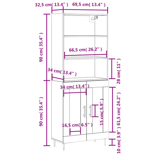 • Kaapin yläosan mitat: 69,5 x 32,5 x 90 cm (L x S x K)