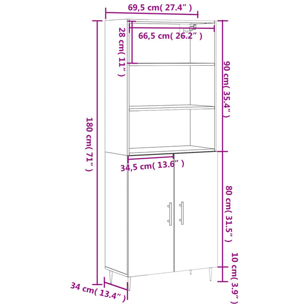 • Mitat: 69,5 x 34 x 180 cm (L x S x K)