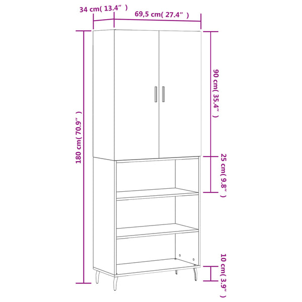 • Mitat: 69,5 x 34 x 180 cm (L x S x K)
