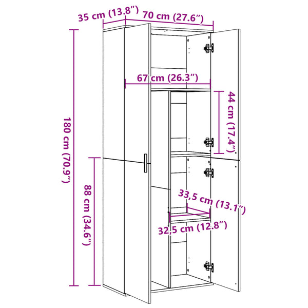 - Mitat: 70 x 35 x 180 cm (P x L x K)