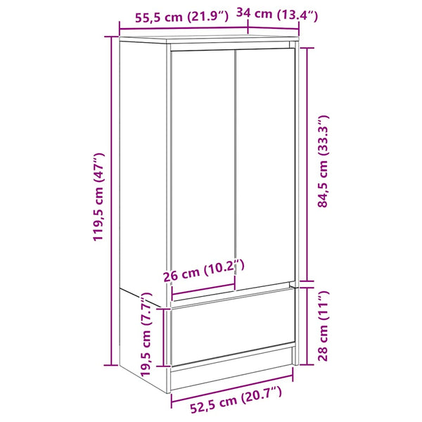 - Kokonaismitat: 55,5 x 34 x 119,5 cm (L x S x K)