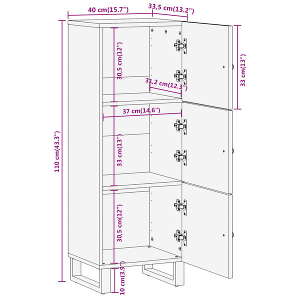 Ruskea ja musta kaappi 40x33,5x110cm mangopuu