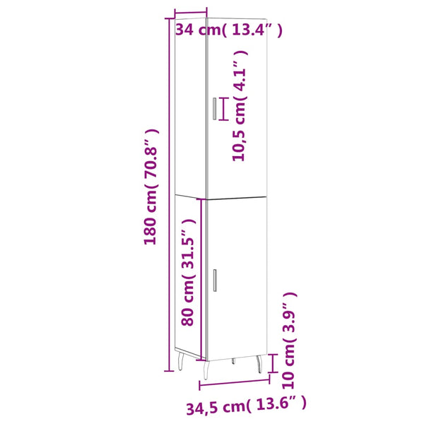 - Kokonaismitat: 34,5 x 34 x 180 cm (L x S x K)