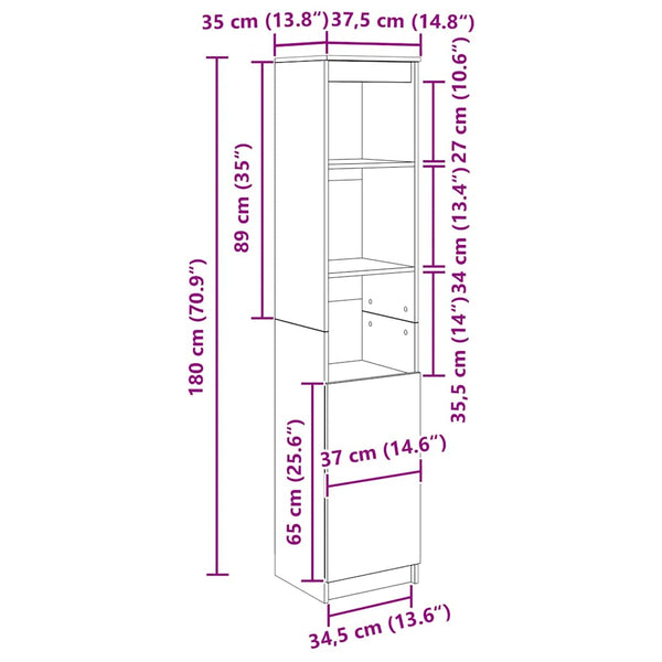 - Kokonaismitat: 37,5 x 35 x 180 cm (L x S x K)