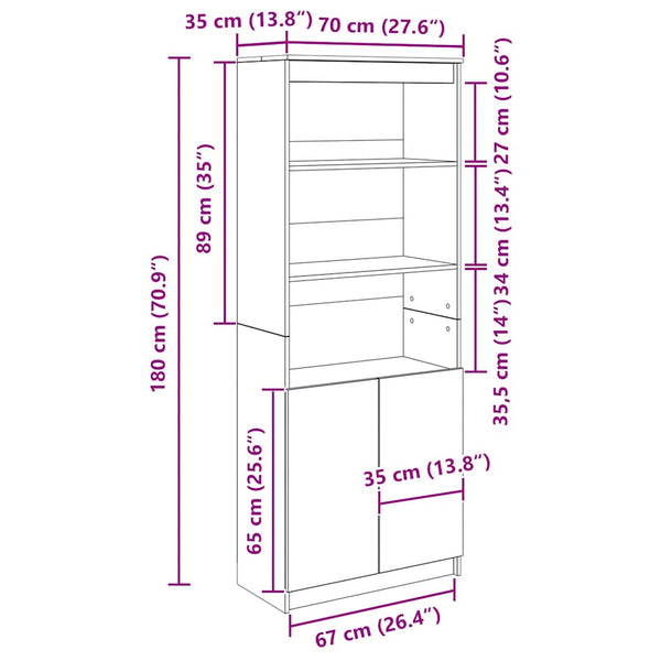 - Kokonaismitat: 70 x 35 x 180 cm (L x S x K)