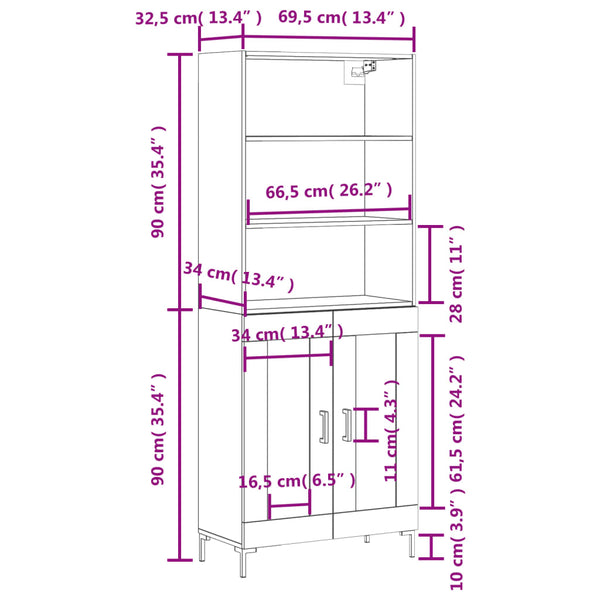 • Kaapin yläosan mitat: 69,5 x 32,5 x 90 cm (L x S x K)