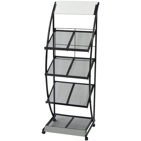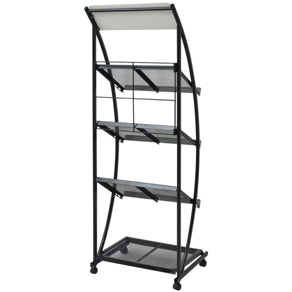 Neljä suurta hyllyä tarjoavat riittävän tilan laittaa esille A4-kokoisia esitteitä, kirjoja tai lehtiä. Voit tulostaa tai liimata yrityksen logon ylimpään levyyn. Sitä on helppo siirtää rullapyörien ansiosta. Se sopii melkein mihin tahansa sisustukseen, sen modernin muotoilun ansiosta. Voit asettaa esittelytelineen toimistoon odotustilaan, olohuoneeseen tai makuuhuoneeseen.