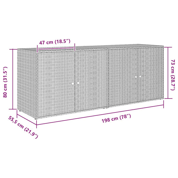 Musta puutarhan säilytyskaappi 198x55,5x80cm polyrottinki