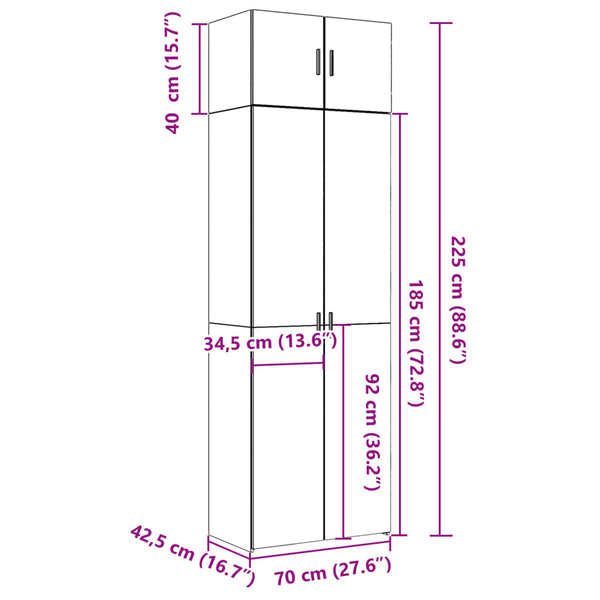 Harmaa säilytyskaappi 70x42,5x225cm puinen
