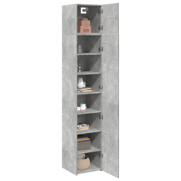 Betoninharmaa säilytyskaappi kapea 40x42,5x225cm puinen