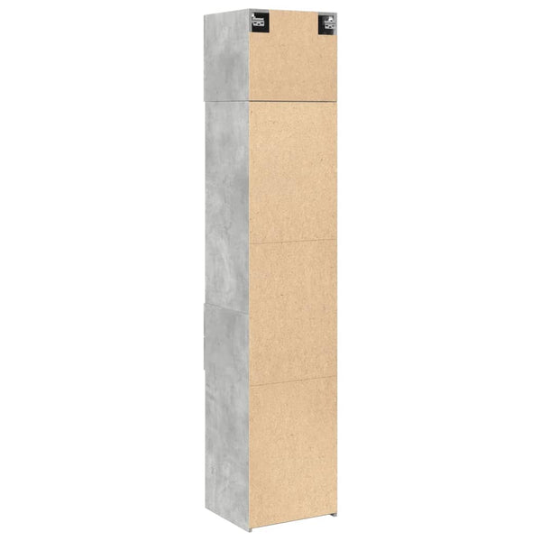 Betoninharmaa säilytyskaappi kapea 45x42,5x225cm puinen