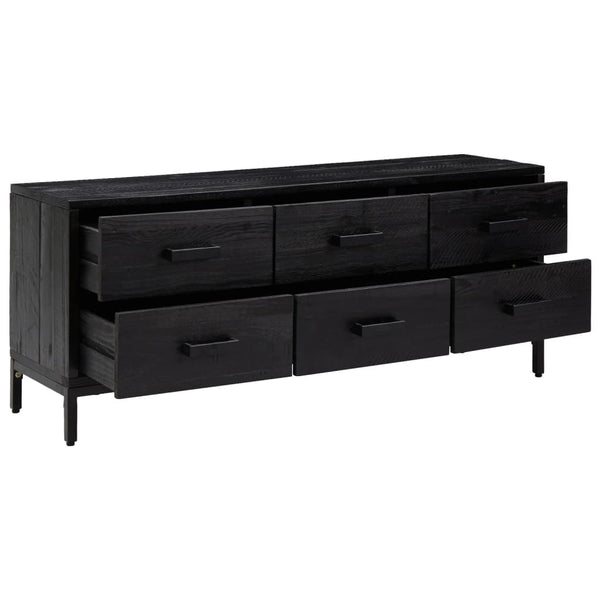 - Täysi mänty: Sivukaappi on valmistettu täydestä männystä, jossa on karkeita reunoja, vikoja ja naarmuja, mikä antaa sille vintagemaisen teollisen ilmeen.