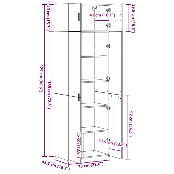 - Yleiset mitat: 70 x 42.5 x 225 cm (P x L x K)