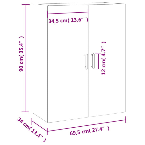 Seinäkiinnitettävä kaappi betoninharmaa 69,5x34x90 cm