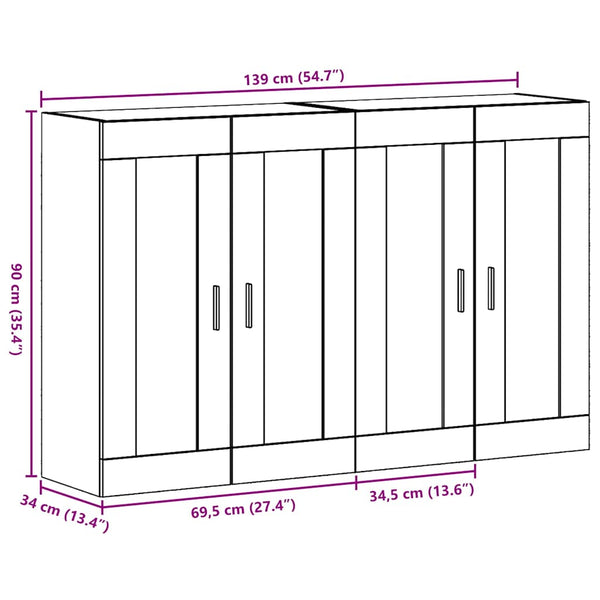 seinälle asennettavat kaapit 2 pcs Vanha puu 69,5 x 34 x 90 cm