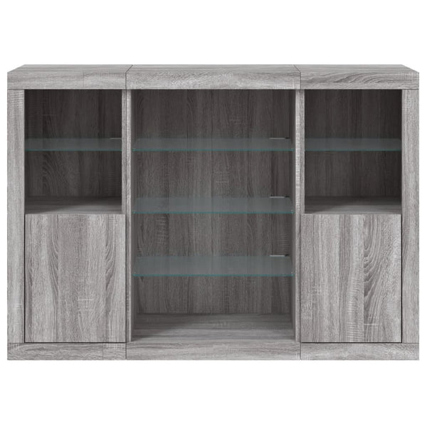 Harmaa senkit led-valoilla 3 kpl sonoma puinen