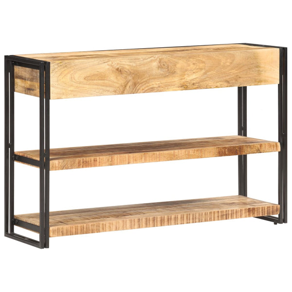 Tämä säilytysyksikkö on valmistettu täydestä mangopuusta. Tällä trooppisella lehtipuulla on kykyä kantaa painoa ja se kestää myös ajan patinaa. Taidokas käsityötaito ja kauniit puunkuviot tekevät jokaisesta kappaleesta hieman erilaisen kuin seuraavasta. Luja jauhemaalattu rautakehys lisää huonekalun tukevuutta. Tukeva pöytälevy on ihanteellinen paikka asettaa esille koriste-esineitä, kuten valokuvakehyksiä ja ruukkukasveja. Tässä senkissä on lisäksi kaksi vetolaatikkoa ja kaksi hyllyä, jotta voit pitää kirjasi, aikakauslehtesi ja muut esineesi siististi järjestettynä ja ulottuvillasi.