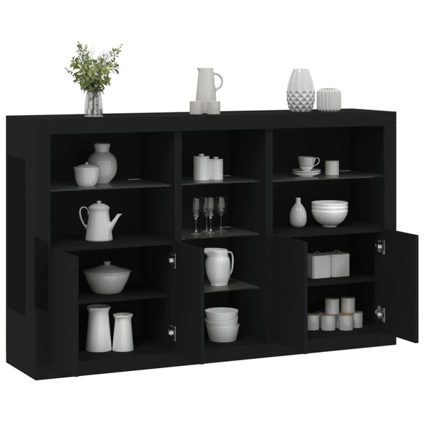 • RGB LED-valot: Buffet-kaappi on varustettu kirkkailla RGB LED-valoilla. Usean muokattavan valikon ansiosta voit vaivatta vaihtaa valojen väriä ja säätää ne myös muuttumaan automaattisesti. Nämä LED-valot eivät vain lisää senkin modernia ulkonäköä, ne myös lisäävät sen trendikkyyttä.