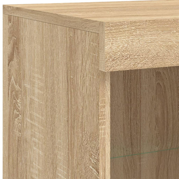 - RGB LED-valot: Buffet-kaappi on varustettu kirkkailla RGB LED-valoilla. Usean muokattavan valikon ansiosta voit vaivatta vaihtaa valojen väriä ja säätää ne myös muuttumaan automaattisesti. Nämä LED-valot eivät vain lisää senkin modernia ulkonäköä, ne myös lisäävät sen trendikkyyttä.