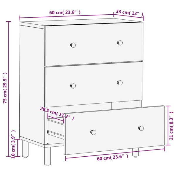 Sivukaappi musta 60x33x75 cm täysi mangopuu