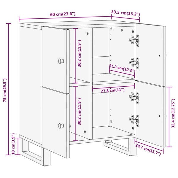- Materiaali: Täysi mangopuu akasian ruskealla viimeistelyllä, MDF, rauta