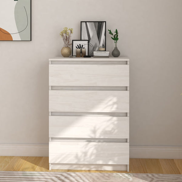 Täydestä männystä valmistettu kaappi on vakaa ja kestävä. Neljän laatikon ansiosta varastokaappi tarjoaa reilusti tilaa kirjoille, vaatteille ja muille tavaroille. Tukeva pöytälevy on myös ihanteellinen paikka esitellä koriste-esineitä, valokuvia tai ruukkukasveja.
