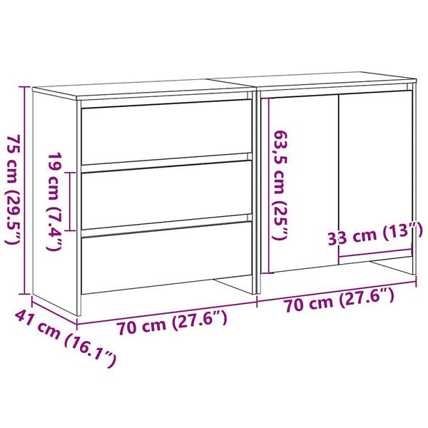 Sivupöytä 2 pcs Musta 70 x 41 x 75 cm Tekninen puu