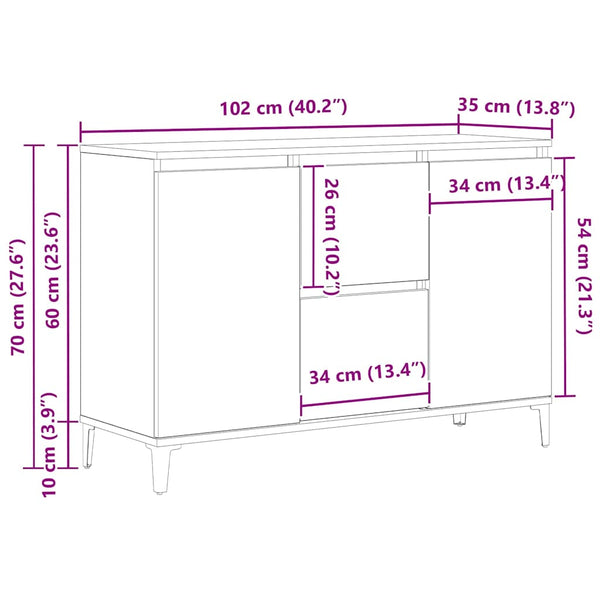 - Kestävä rakenne: Valmistettu kestävästä teknisestä puusta ja vankasta metallijalasta, tämä buffetpöytä on tehty kestämään. Se sopii päivittäiseen käyttöön ilman, että tyyli kärsii.