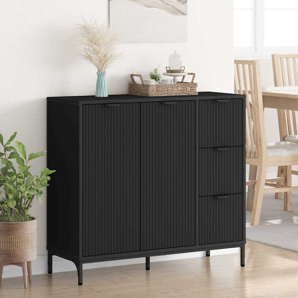 • Toiminnalliset säilytysominaisuudetTässä sivupöydässä on käytännölliset levyhyllyt ja vetävät laatikot, jotka tarjoavat monia säilytysratkaisuja. Saranat ovet avautuvat paljastaen tilat isommille esineille, kun taas pienemmätn tarpeet mahtuvat helposti laatikoihin. Tämä älykäs muotoilu mahdollistaa sujuvan ja helpon pääsyn säilytettäviin tavaroihin.