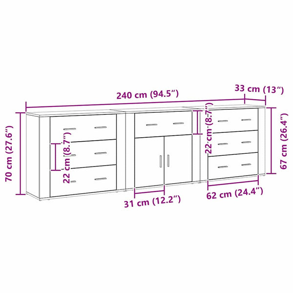 - Yleiset mitat: 240 x 33 x 70 cm (P x L x K)