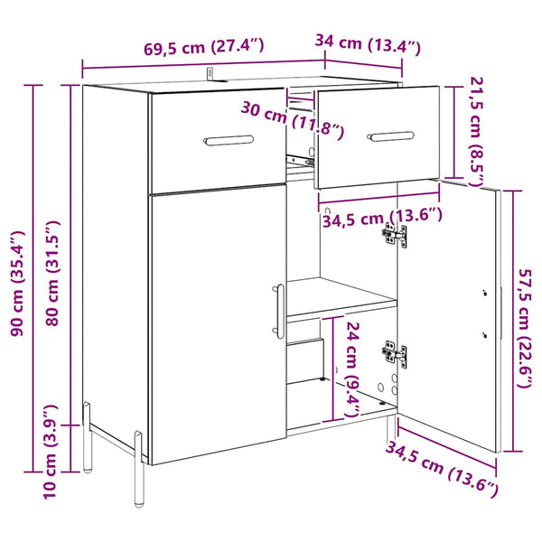 Sivupöytä Musta tammi. 69,5 x 34 x 90 cm Tekninen puu