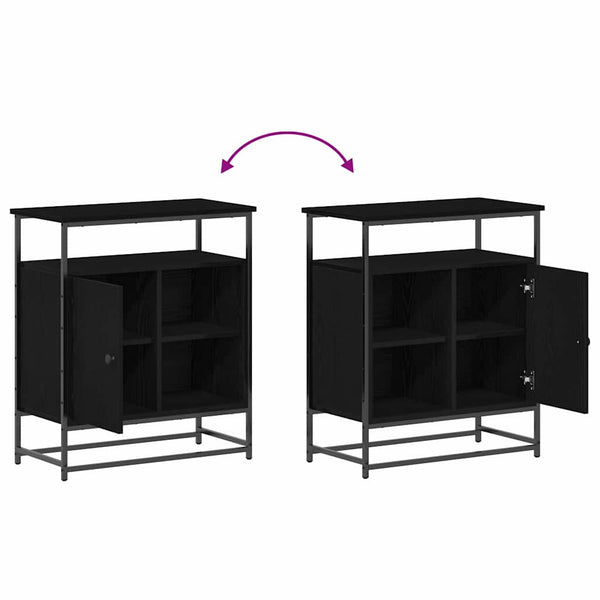 - Tyylikkäät osat: Matta mustat nupit ja saranoidut ovet lisäävät tyyliä tähän sivupöytään. Vankat teräksiset jalat ja musta kehys näyttävät hyvältä ja tekevät siitä myös vakaamman.