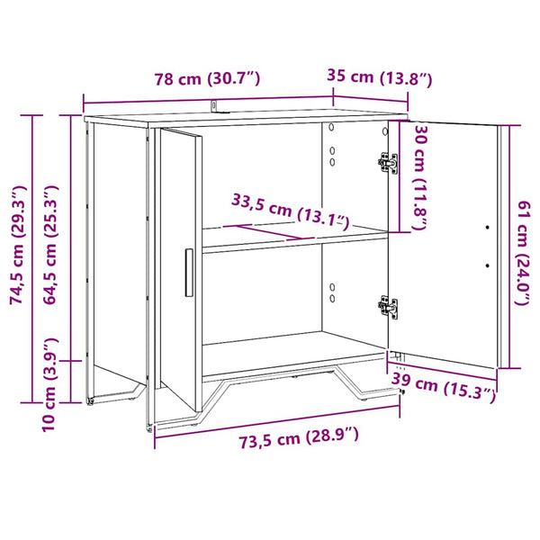- Yleiset mitat: 78 x 35.5 x 74.5 cm (P x L x K)