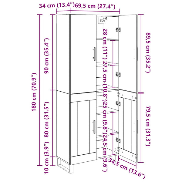 - Yleiset mitat: 69,5 x 34 x 180 cm (P x L x K)