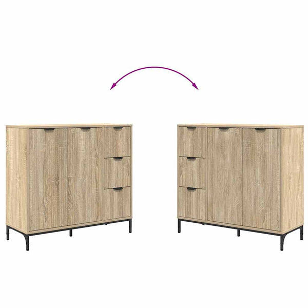 • Toiminnalliset säilytysominaisuudetTässä sivupöydässä on käytännölliset levyhyllyt ja vetävät laatikot, jotka tarjoavat monia säilytysratkaisuja. Saranat ovet avautuvat paljastaen tilat isommille esineille, kun taas pienemmätn tarpeet mahtuvat helposti laatikoihin. Tämä älykäs muotoilu mahdollistaa sujuvan ja helpon pääsyn säilytettäviin tavaroihin.