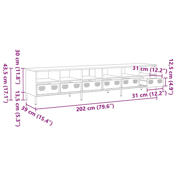 Valkoinen tv kaappi 202x39x43,5cm kylmävalssattu teräs
