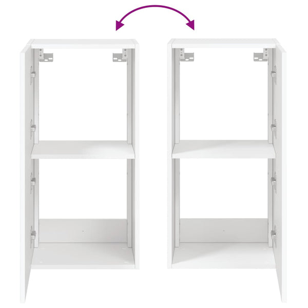 Valkoinen tv-seinäkaappi 40,5x35x80cm led-valoilla